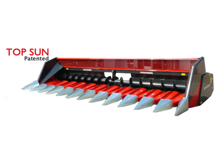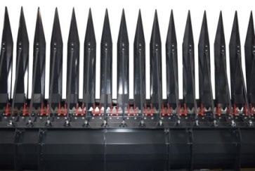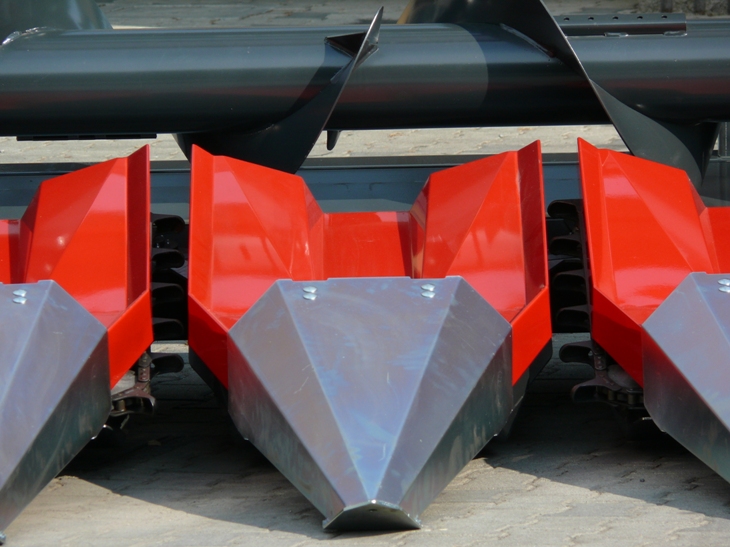 Расположение делителей ряда на жатке осуществлено под наклоном назад, что не дает корзинкам подсолнечника соскальзывать с жатки и минимизирует потери.