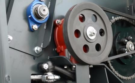 С большим шкивом 290 мм, коробка передач фирмы Comer Company Industry Spa, обеспечивает равномерное движение и трансмиссию режущих ножей. Даёт возможность кинетической силе обеспечить равномерное движение разрывов.